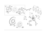 Protective plate to wheel support. M8x12. Expansion lock and cover panel towheelcarrier. Expansion lock and cover panel to wheel carrier. Expansion lock support and cover to wheel carrier, left. Spread lock contact area and cover to wheel carrier, left. Cover panel to left wheel carrier. Protective plate to brake anchor left. Expansion lock base & cover to wheel carrier.